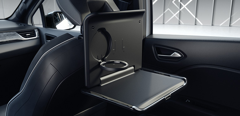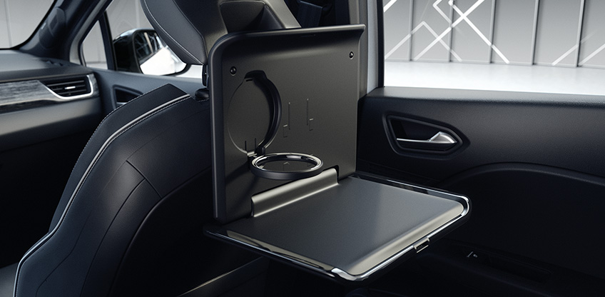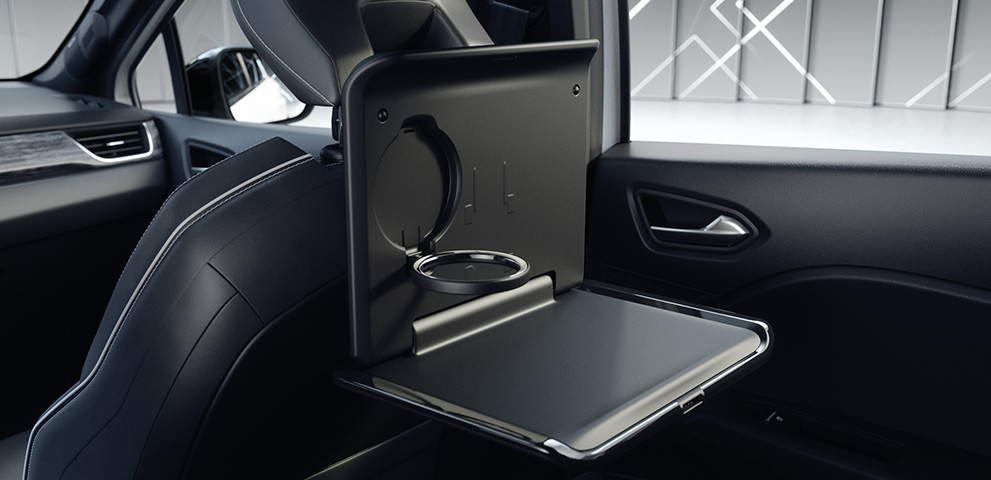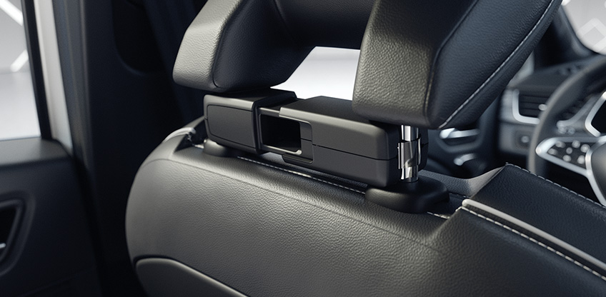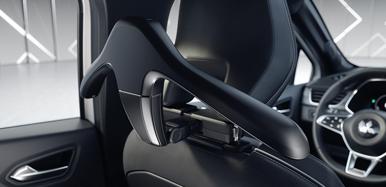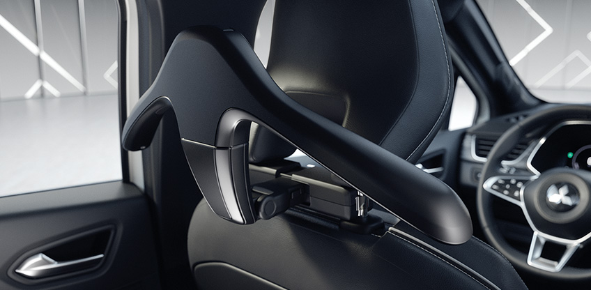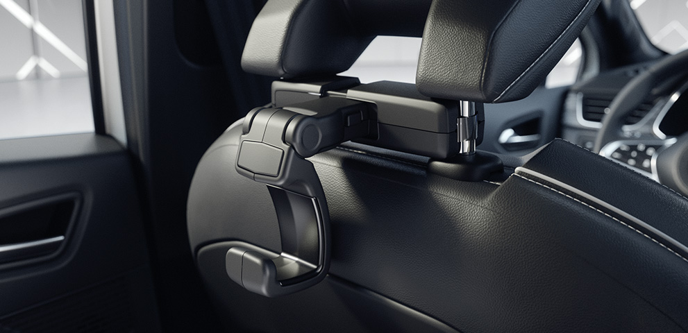 Der Träger an der Kopfstütze dient als Basis für den optionalen Kleiderbügel, Haken oder den Klapptisch, der beispielsweise für die Ablage eines Laptops oder Buches genutzt werden kann.