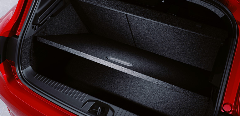 Der COLT ist auch in Sachen Flexibilität eine echte Größe. Bestes Beispiel: der doppelte Laderaumboden5. Er erleichtert das Ein- und Ausladen. Bei umgeklappten Rücksitzlehnen entsteht eine durchgehend ebene Ladefläche zum Transport von sperrigeren Gegenständen. Auch sehr praktisch: der zusätzliche Stauraum, gut versteckt unter der Abdeckung des Ladebodens.