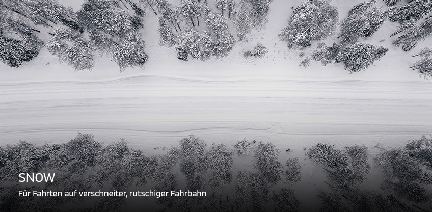 Mit „Super All Wheel Control“ stehen Ihnen 5 Allradmodi zur Verfügung. Wählen Sie einfach den Modus, der zu Ihrer Strecke und der Witterung passt: NORMAL, ECO, SNOW, GRAVEL oder TARMAC.