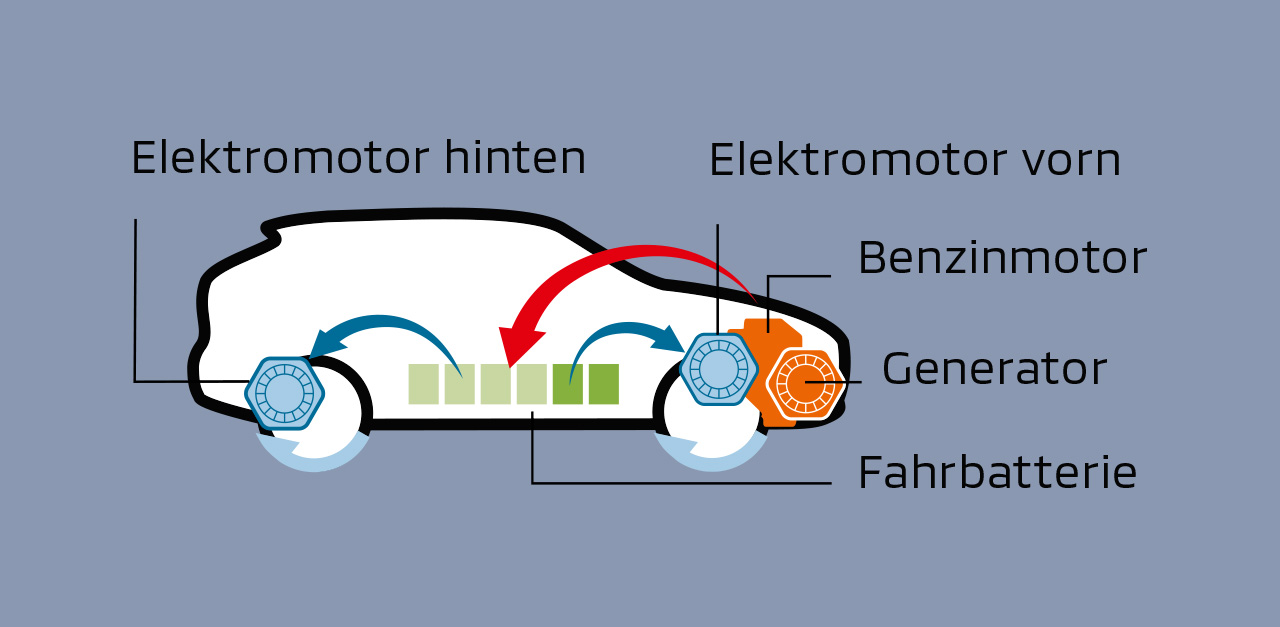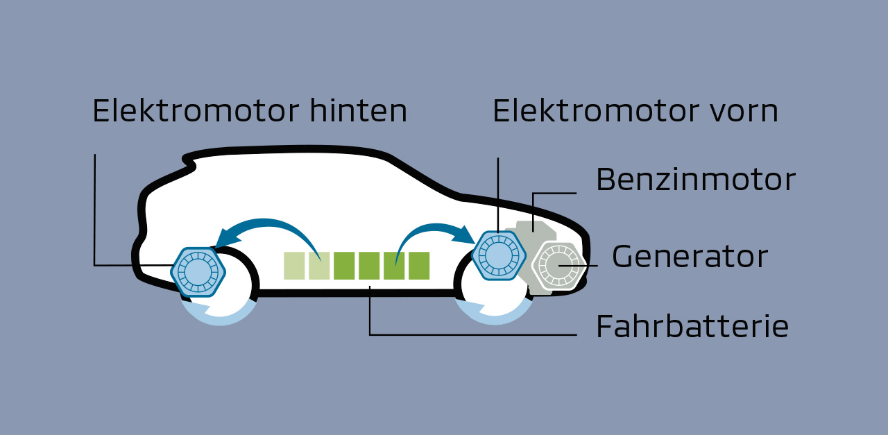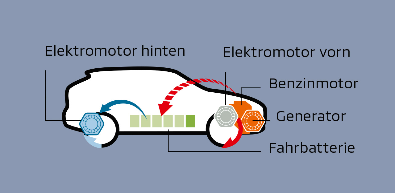 Ein Plug-in Hybrid verfügt über eine leistungsstarke Batterie, die per Stecker (Plug) oder durch Rekuperation aufgeladen werden kann. Durch die Größe der Batterie können die meisten alltäglichen Strecken rein elektrisch zurückgelegt werden.