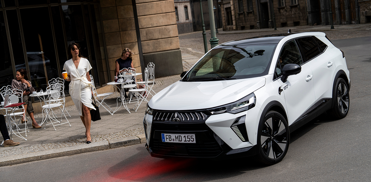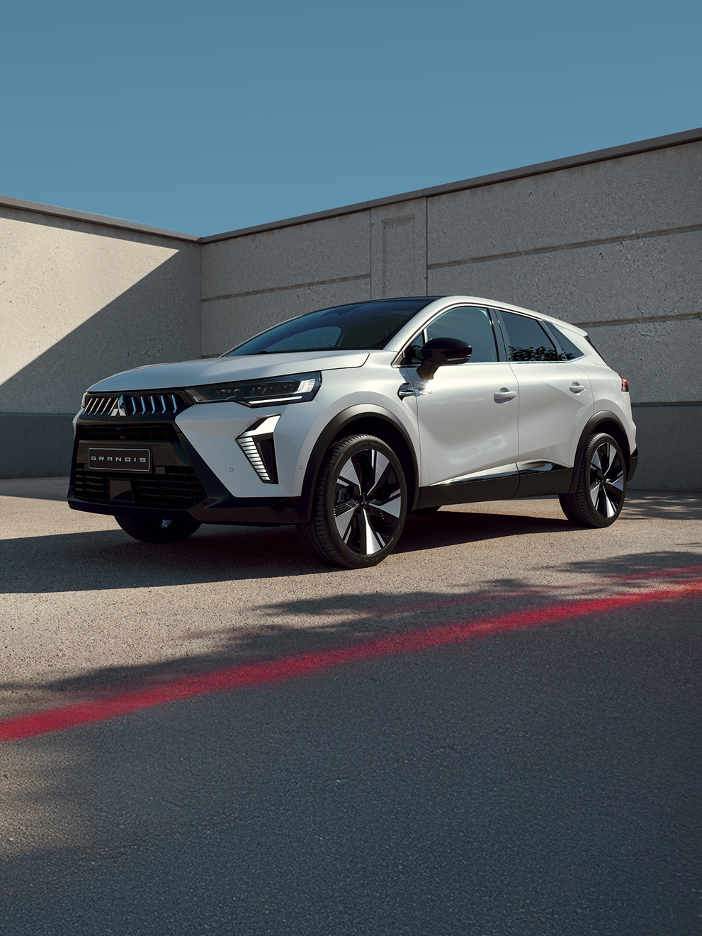 Das markante Profil vermittelt Stärke und Abenteuerlust. LED-Leuchten an Front und Heck, bis zu 19" Leichtmetallfelgen und das charakteristische „Dynamic Shield“-Design von Mitsubishi sorgen für einen kraftvollen Auftritt. Das skulpturale Hexagon am Heck und intensive Karosseriefarben verleihen dem Fahrzeug einen Hauch von Raffinesse.