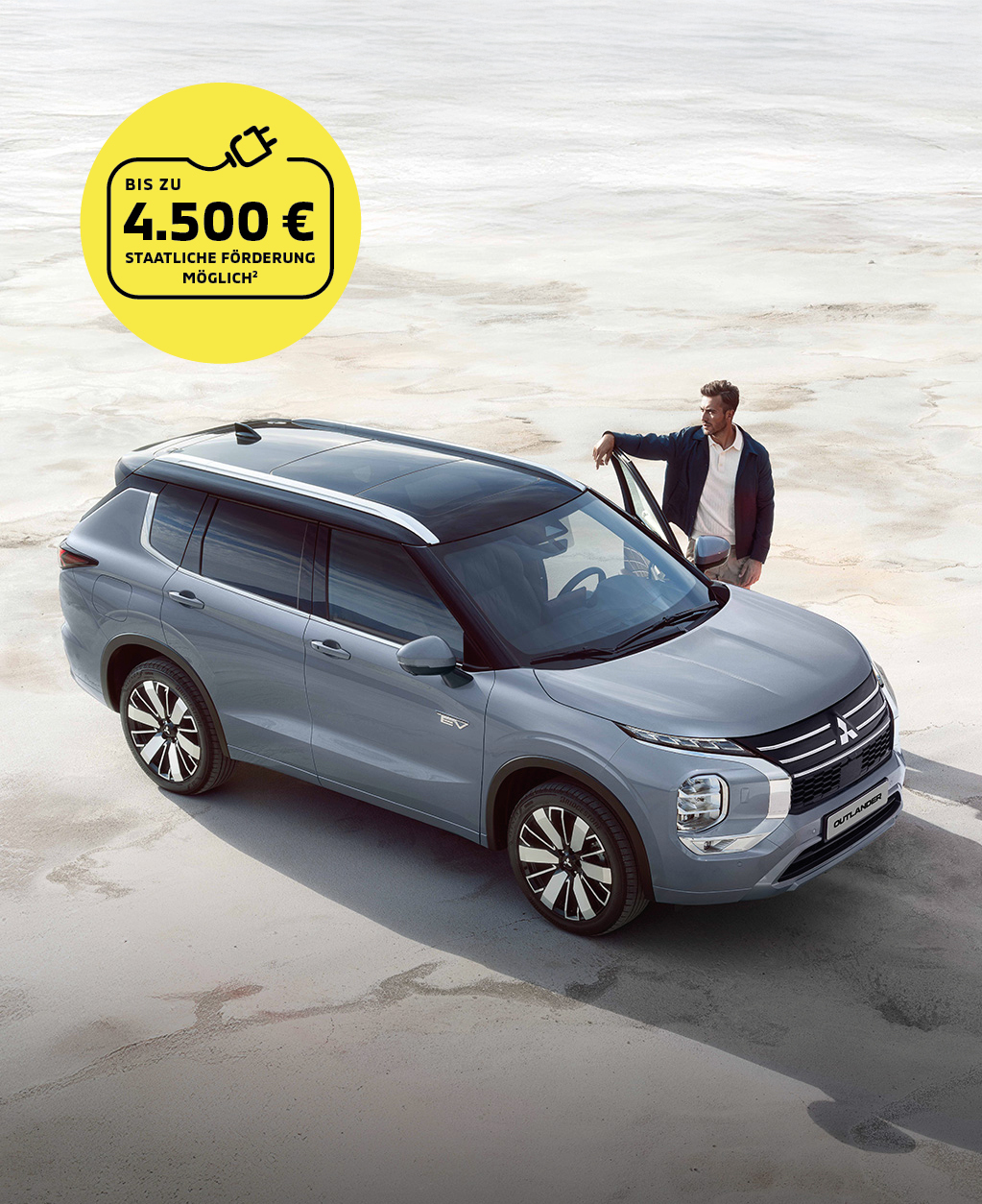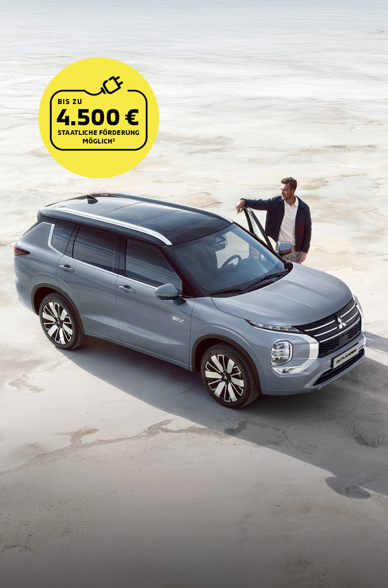 2Privatpersonen werden bei Kauf oder Leasing eines Mitsubishi Eclipse Cross BEV oder Mitsubishi Outlander PHEV bei Erstzulassung in Deutschland und Vorliegen der persönlichen Fördervoraussetzungen durch die öffentliche Hand unterstützt, sofern deren zu versteuerndes Haushaltsjahreseinkommen bei maximal 80.000 € liegt. Die Einkommensgrenze erhöht sich für bis zu 2 Kinder unter 18 Jahren um 5.000 € je Kind. Höhe der Prämie: