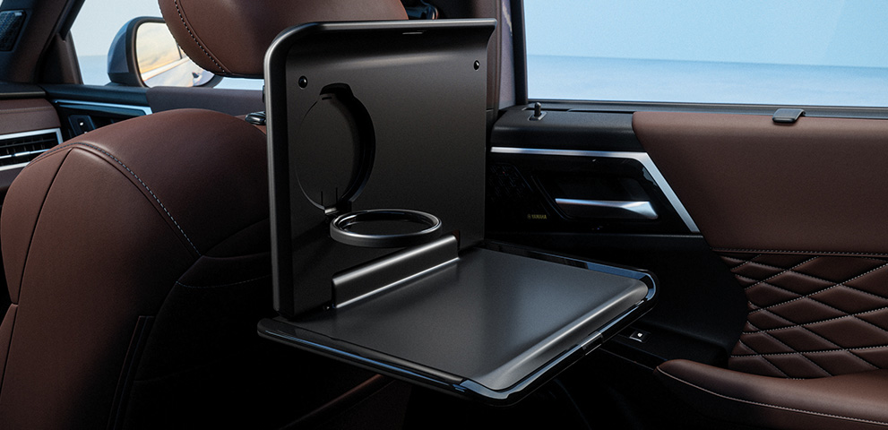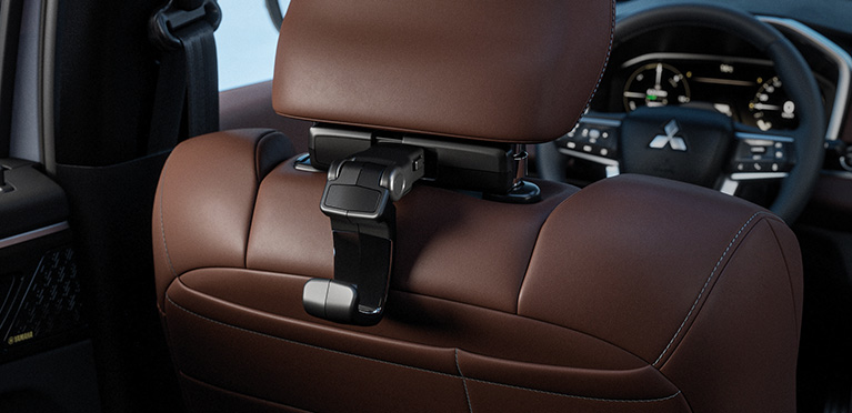 Der Träger an der Kopfstütze dient als Basis für diverse Optionen wie Kleiderbügel, Haken oder Klapptisch.