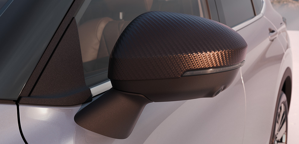 Ein markantes Detail für Fahrer- und Beifahrerseite: Spiegelcover wahlweise in Chrom- bzw. Carbon-Design oder in edlem Schwarz.